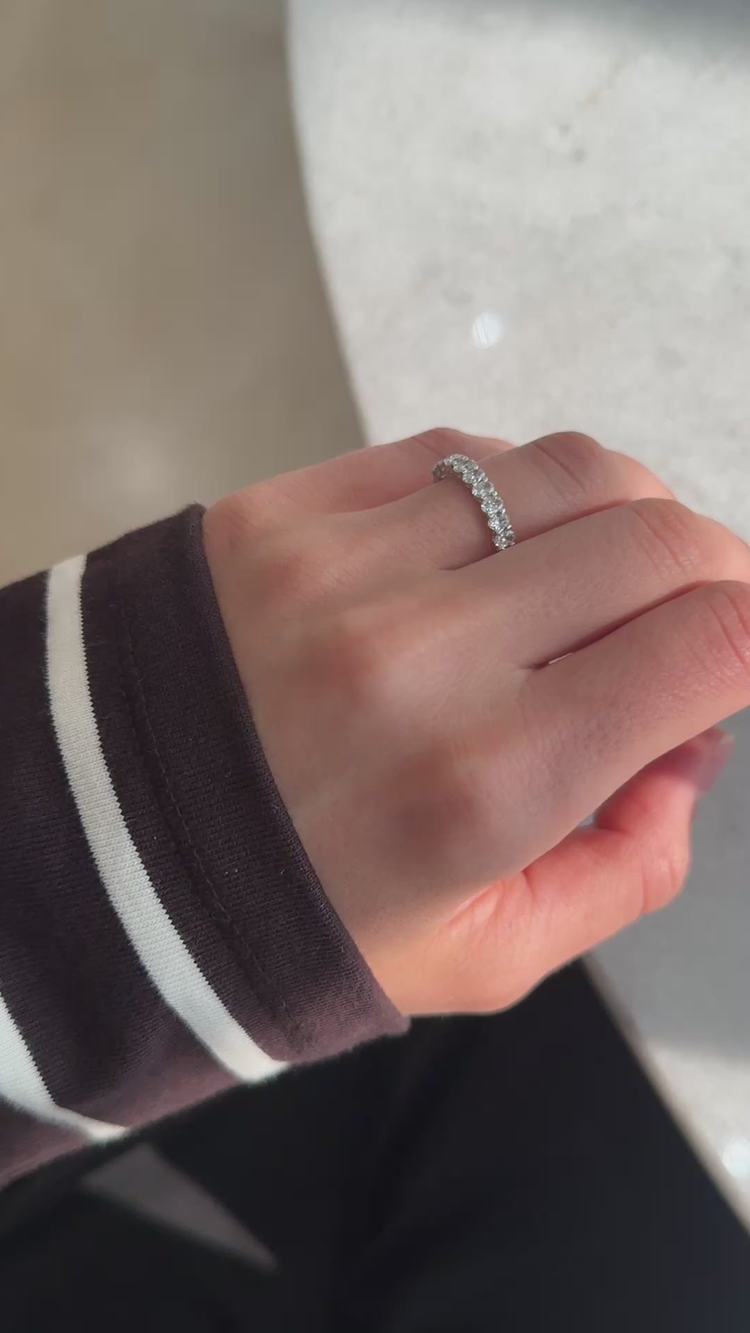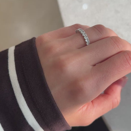 If your exact size is not available in stock, please note that half eternity bands can be resized by up to two sizes, either up or down. Kindly include a note with your order or contact us via WhatsApp for assistance.